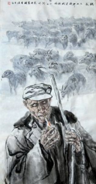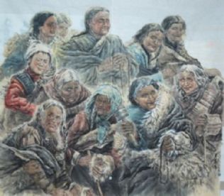 “画作需要悟性!”王勇说,中国的国画,里面渗入了天人合一的儒释道精神,需要感悟天人合一、道法自然的道理。每逢画画,他都是冥思、彻悟,从人物的灵魂深处感受精神的东西,他致力于“传神”。《虔诚》是一幅以西藏人物为蓝本的国画。在王勇眼里,西藏的人物坚韧、沧桑、虔诚、粗旷,是绘画的好素材。30多年来,王勇的工笔基础是最最扎实的,他画这幅作品时,无论是面部的笔法,还是人物表情的掌握都十分到位。看,一张羊皮袄,满头华发,满脸沧桑,捏着串珠的、合扰胸前的瘦骨嶙峋的双手……都是认真勾勒、精心绘制而成。而背景,用了飞雪飘扬的背景,使的画面整个意境得以提升。可圈可点的是,这两个人的眼睛真切而传神,还有那紧锁的眉头,一道道的抬头纹,鬓角暴出的青筋,那略微撇着的嘴角,透着坚毅和无惧!刻画那般细腻,不禁让人怀疑:是画?是照?据说,专家们在“未名骏马”评选时,除了对《虔诚》这幅作是带有宗教色彩有个别评委提出质疑外,对于构图、绘法等其他方面毫无疑义,评委们都是一致首肯。