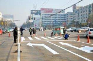 我县对县城主要街道的道路交通标线进行重新喷绘