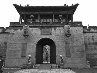 王家大院的四面各开一个堡门,东堡门位于主院前大通道的东端,是王家大院的主门。高高的门楼石雕匾额上刻有“寅宾”二字,意为东方之神敬导日出。游人只能从东堡门进入,我们便从这里进入了王家大院。