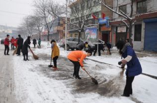 本报讯2月7日上午一上班,县委书记韩良会、县委副书记、县长王琳玉等县四大班子领导就带着锹、铲、扫帚走上街头,清扫积雪。县直各单位也组织干部职工积极清雪除冰。苗志崇