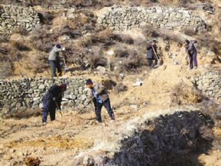 “袁书记嘱咐要多种核桃,耐旱。去年遭了冻灾,俺们没灰心,又整治山地种了60多亩核桃。”60岁的圪垛儿村核桃合作社负责人武三绵底气十足。武下生家老两口去年就加入了核桃合作社,4亩核桃都统一管理经营。71岁的女主人王反香快人快语:每亩有300元的土地流转费,米面有儿子给买,加上自己种的大白菜,过个庄户人家的日子没问题!
