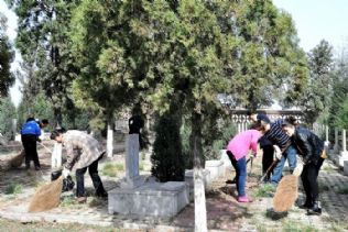 3月28日下午,县民政局和清徐报社组织干部职工在平泉烈士陵园开展义务劳动。