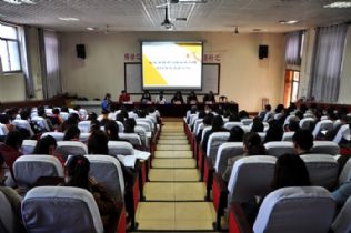 4月17日下午,太原市教育局师风报告团巡回演讲在县二中阶梯教室开讲。