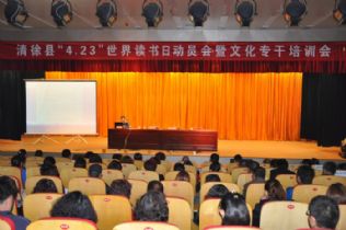 4月21日上午,我县在文体中心小剧场举行“4.23”世界读书日动员会暨文化专干培训会。县文体广新局特邀市图书馆相关负责人为我县10个乡(镇、街办)的文化站站长、24个社区的图书管理员、188个村的文化专管员进行培训。副县长芦国庆出席。