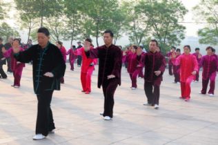 5月1日清晨,县杨氏太极拳协会百余名会员在东湖广场进行了太极拳、太极剑、太极刀集体展演。