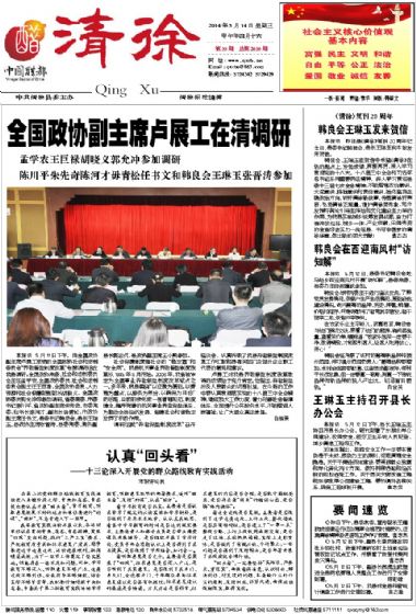本报讯昨日是《清徐》复刊20周年纪念日,县委书记韩良会,县长王琳玉向本报发来贺信。 韩良会、王...