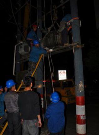 5月18日晚6时40分左右,县城美锦大街和通湖路交叉口一变压器突然起火,造成停电。县供电公司接到报修电话后,立即组织人员赶赴现场处理,及时阻止了火势的蔓延,随后增派1辆吊车、3辆工程车和10余名工作人员对变压器进行了更换。临近10点时,恢复供电。