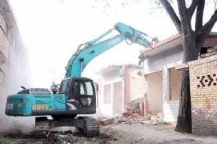 5月30日上午,我县多部门联合,对县城防洪排水泵站外管网雨水方涵工程涉及的一处建筑进行了拆除。