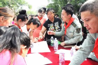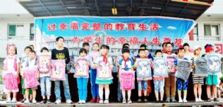 5月30日,在清源镇陈庄小学,县人口计生局向该校就读的外来务工人员独生子女送上了一份节日的礼物。张太义摄