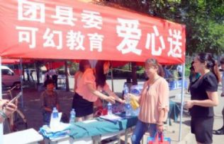 团县委联合可幻英语培训学校为广大考生及其家长免费派送矿泉水