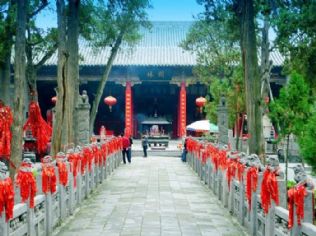 关林在河南洛阳南行七公里处,相传关羽的首级埋葬于此。古代帝王墓冢称陵,圣人墓冢称林。孔子是“孔圣人”,有孔林,关公是“武圣人”,所以这里称“关林”。