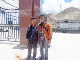 从兰州坐火车经西宁到拉萨,经过40多个小时的颠簸,目的地终于到了。在火车上,我结识了浙江的郑昌、小俞,上海的小鲁、小玉,他们都是二十多岁的年青人。下火车时,这几位热心的年轻人邀我一起到他们预约的旅店住下,并且给我买饭端水、嘘寒问暖,真是关怀备至。郑昌还专门抽出半天时间带我在拉萨游玩,给我拍了很多照片。我十分幸运自己遇上这么几个有修养的孩子,他们不嫌我老,不嫌我土,让我好不感动。