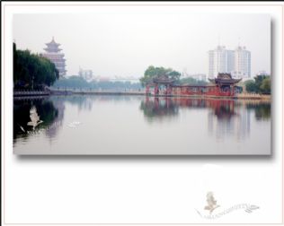 彩桥飞架旧新城,疑是苏堤南北分。高臂掘机挥彩笔,北湖一片绣花声。