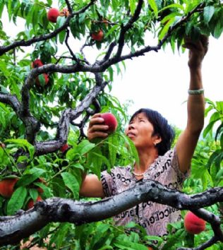 我们一行,正是冲着村里硕果累累、丰收在望的大久保鲜桃。在这里,山沟里和山丘上有连成片的桃林,透过绿叶的掩映,鲜红的大久保桃耀眼夺目。它没有一般桃子成熟后令人心悸的桃毛,尽可惬意采、放心摘、顺手吃,不会让人皮肤发红、生痒。尝一口,桃汁溢口,甜、脆、爽,就连空气里都飘着它香甜的气息。哪个好吃?是我们帮村民采了桃后才知道的秘诀。桃儿为什么这样红?有脚下土地的滋养,有村民们对优良传统的坚守。