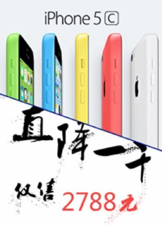 “裸”一:iPhone5c直降1000,仅售2788元;“裸”二:送2588元话费;每月仅需61元享129元套餐;