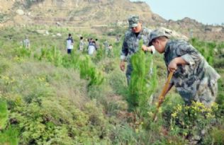 8月27日上午,县人武部常备民兵应急分队、县消防中队、武警清徐中队和县林业局百余人到圪垛儿村开展“军民共建国防林”建设活动,此次活动共种植针叶油松1000余株。