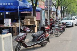 我县规定美锦大街道路两边不准停车,然而,非机动车却把路牙堵了个水泄不通,一些商家甚至占道经营,严重影响了交通秩序。本报记者摄于美锦大街交通银行门口