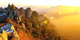 他说,今日到此,为的是让大家分享“会当凌绝顶”的快乐。他还幽默地套用了一个广告语说:“大家好,才是真的好。”却原来快乐是可以分享的。看这云烟茫茫中逶迤群山尽收眼底,不禁心生感慨:大山本无私,但只有登临,才可意会。