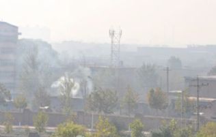 因焚烧垃圾,使得二水厂对面居民区内乌烟障气,能见度很低。本报记者摄于11月3日上午