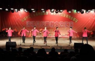 11月21日,我县反邪教文艺汇演在县文体中心举行,100余名群众演员精彩的表演赢得了观众的阵阵掌声。
