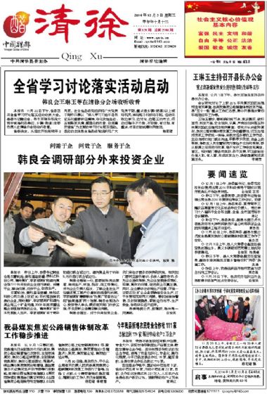 本报讯昨日上午,县委书记韩良会赴双喜轮胎、美和居老陈醋、思科达科技公司、南岭煤矿、李家楼煤矿和碾...