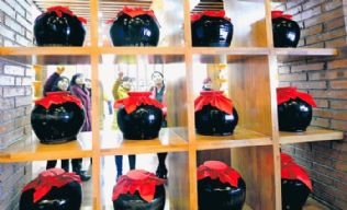 1月9日,游客正在山西水塔老陈醋宝源老醋坊参观。作为国家级非物质文化遗产的水塔老陈醋,大力弘扬以手工醋为主的醋文化。宝源老醋坊生产的纯手工老陈醋,历经冬捞夏晒一到数十年不等,产品酸、香、绵、甜、鲜,受到消费者的欢迎。马立明摄
