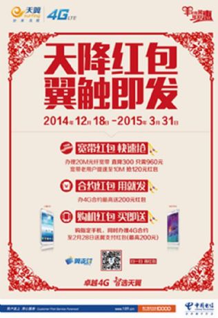 宽带红包老用户提速至10M宽带,抢120元红包!办理20M光纤宽带,直降300!只需960元!合约红包等啥呢?办个4G合约最高可以拿200元红包购机红包买指定手机,同时办理4G合约至2月28日送翼支付红包(最高200元)
