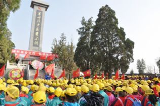 4月3日,实验小学2400余名学生手持自制的小白花,到县烈士陵园顷怀先烈、祭奠先贤。