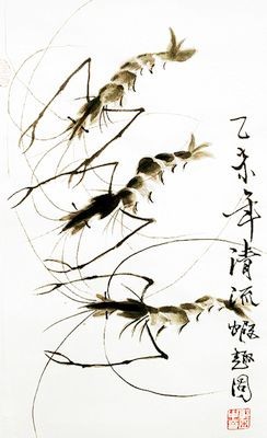 那天,朋友生日。午间休息时,亚中拿出一幅虾图赠送。只见虾在宣纸上生动起来,活泼、灵敏,有立体感,用亚中的话说,画得通了,透了。