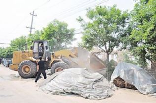 本报讯昨日上午,我县组织河西综合执法队、县武装部常态应急分队、清源镇和县住建、国土等多部门联合执法,依法强制拆除了清源镇六合村南两处私占耕地的违法建筑。