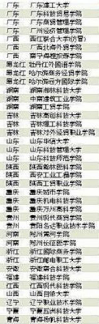 正值各地高考分数公布之际,近日,“上大学网”公布了最新一批“中国虚假大学警示榜”。这是该网第四次公布上述榜单。按照校名有118所虚假大学分布于北京、上海、河北、湖北、天津、江苏等25个省区市。其中,注明“中国”“北京”“首都”等字样的假大学数量达39所,占总数的三分之一;以“经济贸易大学”“工商学院”“科技学院”等命名的比比皆是。“上大学网”查证,这百余所假大学均不在教育部公布的具备高等学历教育招生资格的全国高等学校名单中,也不在当地教育主管部门批准的相关民办学校名单中。