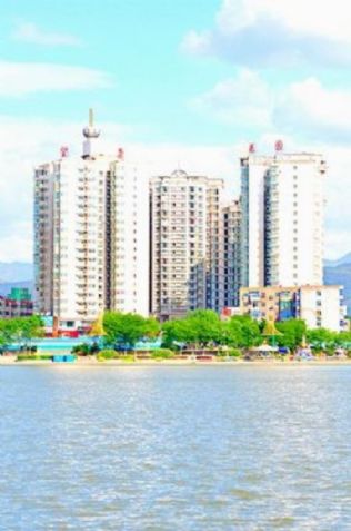 湖面风掠波光粼,望景楼下云海映。梗阳城池山水翠,怡心楼阁倒影中。