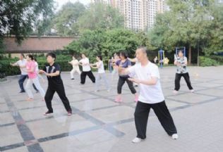和着舒缓的音乐,百余名中老年朋友整齐柔美的动作随之舞动,时而柔和舒缓、轻松自然,时而动静相依、刚柔并济,阴阳开合、进退自如的套路,配以极具民族特色的服饰,加之清晨淡淡的雾气,行云流水间令人赏心悦目,处处彰显着太极的神韵。这是记者近日在东湖广场看到的县杨氏太极拳协会会员和太极拳爱好者晨练的情景。今年上半年,县杨氏太极拳协会在省太极拳协会的关心指导下,在县有关部门、社会各界的大力支持下,秉承“弘扬太极文化,惠及更多群众”的理念,团结和带领广大太极拳爱好者,积极投身全民健身运动,为推广、普及、提高太极拳运动和弘扬民族文化做出了积极的努力。