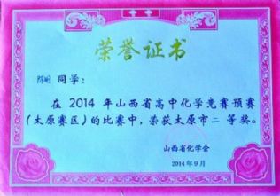 一路奖状一路歌。这位理科状元不仅成绩好,而且历任班里的班长、宿舍的室长,业余时间,他还爱好象棋等活动。在一厚沓的奖状中,记者随手抽出两三张,一张是2012年全校高一象棋比赛第二名,一张是2014年全国高中数学联合竞赛三等奖优胜证书,还有一张是2014年山西高中化学竞赛预赛(太原赛区)比赛中,荣获太原市二等奖。