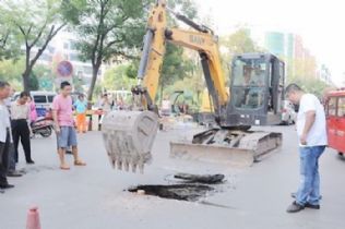 在现场,突击队兵分三路:一路负责现场挖坑清污,一路负责疏导交通,一路负责备料运输。由于坑底管网密布,电信、自来水等管线纵横交错,挖机不能进入坑口。为保护好管网线,施工人员采取“纯手工”掏挖污物的方法,一丝一毫不敢马虎。为尽快完成任务,李三赖、王二牛、陈占平、郭田儿等争分夺秒,污水粪水溅到身上、脸上,大家顾不得擦一把;雨靴里灌满污水,他们浑然不顾。顶着30多度的高温,迎着刺鼻污水的考验,他们不嫌脏不叫累,连续作战……在住建局、市政公司领导现场指挥调度下,管理科、道路队参战人员分工合作、协同作战,有的备料、紧急筹备管道、更换破损管道、置换新的波纹管,有的挖土、清污、搬砖、运沙、回填土,大家忘记了疲劳,顾不上吃饭,经过紧张激烈的抢修,终于在最快的时间内将塌陷地面修整完好。