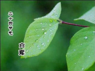 每年9月8日前后太阳到达黄经165度时,为“白露”节气。“白露”是反映自然界气温变化的节令。露是“白露”节气后特有的一种自然现象。此时的天气,正如《礼记》中所云的:“凉风至,白露降,寒蝉鸣。”据《月令七十二候集解》对“白露”的诠释——“水土湿气凝而为露,秋属金,金色白,白者露之色,而气始寒也”。古人在《孝纬经》中也云:“处暑后十五日为白露”,阴气渐重,露凝而白也。”其实,气象学表明:节气至此,由于天气逐渐转凉,白昼阳光尚热,然太阳一归山,气温便很快下降,至夜间空气中的水汽便遇冷凝结成细小的水滴,非常密集地附着在花草树木的绿色茎叶或花瓣上,呈白色,尤其是经早晨的太阳光照射,看上去更加晶莹剔透、洁白无瑕,煞是惹人喜爱,因而得“白露”美名。