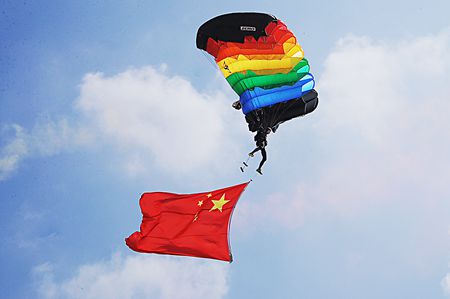 开幕式上举行了精彩的航空表演,数千民众在赛场周围一睹为快。表演空域范围为机场中心南北10公里,东西5公里,3000米以下。表演科目有热气球系留飞行、烟幕墙表演、地方锣鼓表演、三角翼表演、航空模型表演、动力伞表演、飞机跳伞表演等。跳伞表演队献上“仙女下凡”等特技跳伞表演,跳伞选手飞在空中燃放礼花,摆出各色造型。跳水世界冠军田亮作为特邀嘉宾亲临现场并与观众互动。