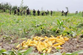 这是一支召之即来、来之能战的队伍!有任务时,指到哪里打到哪里;没任务时,加强综合训练。他们风里来,雨里去,参与了重点工程的每一个重要环节,有效保障了工程现场秩序,关键时刻,这些小伙子也是挥舞起镰刀奋战田间地头的劳动能手!看,那执守在清表工地的队员们,中午饭就是一碗盒饭一碗汤,田野作餐厅,田垄当饭桌,但他们以苦为乐。在我县重点工程如火如荼扎实推进的过程中,到处留下了他们的身影。他们就是骁勇善战、吃苦耐劳的“双供”工程秩序保障组的队员们。图为队员们在国锦电厂长输供热管线贾兆段清表时,帮助王内内大娘家收割玉米。