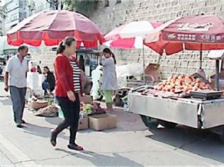 西门坡菜市场外就地摆摊设点占道经营情况严重