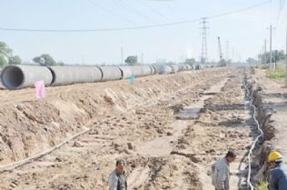 本报讯“下挖不到一米就见水了。”9月25日,记者在引黄入清工程牛家寨段看到,大批无砂管一字排开,像一节节火车车箱一样陈列在沟槽一边,一辆挖机静静地停在远处,与几天前记者来工地看到的几乎无二,工程进展缓慢。“地下水位太高,排水成了重头戏。”工程负责人陈师傅告诉记者,他们负责的牛家寨段共1600米长,目前只完成400米,尚有3/4的工程量。“为什么不见降水井?”“我们采用比降水井更奏效的插管降水法,每1.2米下一根管子,伸到地下4米左右,然后用自吸泵直接从地下泥土中吸水。但是,我们前面挖,后面仍会因泥土过湿而塌方,再遇上降雨,就更是雪上霜了。我们已经耽搁了七、八天了。”陈师傅说。“那边已经铺了400米,平均一天能铺多少管子?”“铺不快,最快12—13根。正常条件下应该铺18、9根,甚至更多。”“像这个进度,大约什么时候才能铺完?”“不好说,如果没有降雨和其他因素的干扰,我们开足马力,也得10月底。”陈师傅回答。
