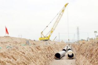 “老王,先把管子下槽去,腾下地方,挖机就可以绕过高压线,那边把土方就可以挪走了……”张经理沙哑着嗓子指挥着施工。“我们两头施工,一共有30多名焊工,村东工地有四台挖机、两台履吊机,比这边还忙呢。”张经理对记者说了一声,又跑去水渠边安排工程了。