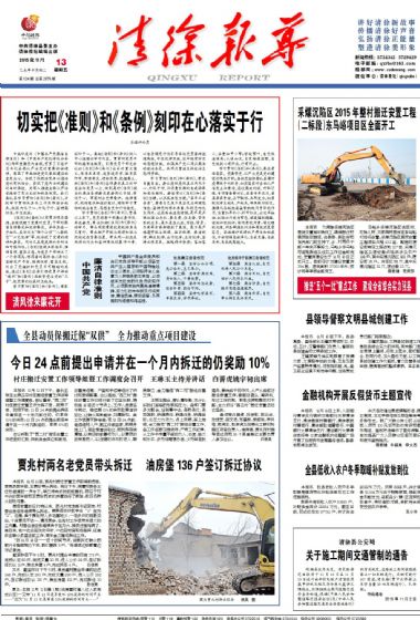 本报讯11月11日,贾兆村搬迁安置工作取得新进展,老党员郭学歧、王贵珍带头拆迁。当日下午,随着村...