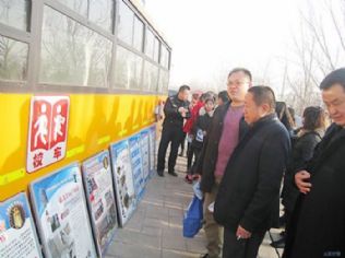 本报讯11月30日,县交警大队安全科民警深入山西童华阳光校车有限公司,开展以“拒绝危险驾驶、安全文明出行”为主题的宣传活动,切实加强校车安全监管工作,提高校车驾驶人的安全意识和法制意识。