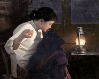是夜,我躺在被窝里,一边背诵学过的课文,一边看着妈妈在昏暗的灯光下,为我缝制套袖袖。妈妈的辛劳与慈祥让我倍感幸福。只见她从身边的“泼布包”里,找出一块块的旧布,弥合成一块宽约七、八寸,长度与我的衣襟相等的布块。折叠为双层后,用明线两边缝口,留出长长的开口,絮上一层棉花,然后翻转过来,便成了一条宽三、四寸絮有棉花的掩襟襟。这时,妈妈将我的衣襟拆开一边,将掩襟襟开口边的两层与衣襟的面子上的一层缝在一起。那密密匝匝大小一样的针脚明线,彰显着妈妈针功的非凡与智慧。最后将先缝好的三层,与衣襟里面的一层缝合,掩襟襟便和我的棉袄连为一体,天衣无缝了。这时候妈妈脸上露出了笑容,我便迫不及待地坐起来,将缝有掩襟襟的棉袄穿在身上。掩襟襟挡住了裸露的躯体,一股暖流顿时传遍全身,再大的北风也不会直吹到我的身上了。