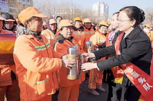 农商行向287名环卫工人赠送“暖心杯”