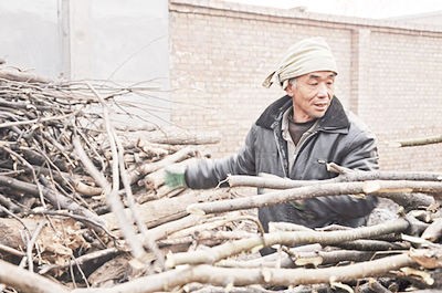 冬月十二,天气一下子冷了许多。这天一早,记者几经周折,见到了正在新堡村梨木收购中心搬卸木材的丁喜平。当时差不多九点多钟,老丁已经骑着小三轮车在村子附近拾材,往返收购中心两趟了。“这活计挺好,能马上结现。”冬后,老丁每天早上五点出门,在村子附近找一些废弃的木材,再卖给收购中心,赚取一点微薄的生活费。跑一天,也不过十几块钱。有时候,他跑遍村子一整天,也捡不够一车的木材。