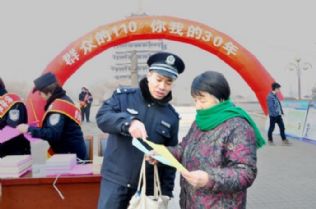 1月10日是全国“110宣传日”,当日上午,县公安局在醋都广场开展了以“群众的110,你我的30年”为主题的宣传活动,民警现场发放了宣传资料,并为群众提供了咨询服务。