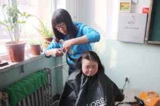 县特殊教育学校学生李艳彤母亲为学生义务理发