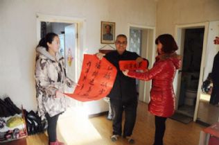 1月15日上午,东湖街道南二街社区人员对困难家庭和孤寡、空巢老人等进行节前走访慰问,并为他们送去新年春联。