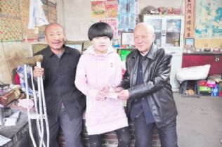小佳鑫有了“俩爷爷”!2015年10月31日,我县电影公司离休干部任世华在他的两个女儿任艳、任丽陪同下,与我县桃花营村13岁的小女孩赵佳鑫结下了暖心的“爷孙亲”。